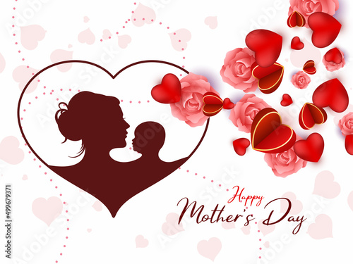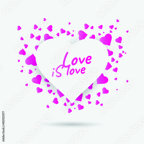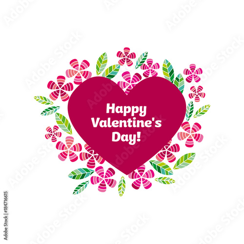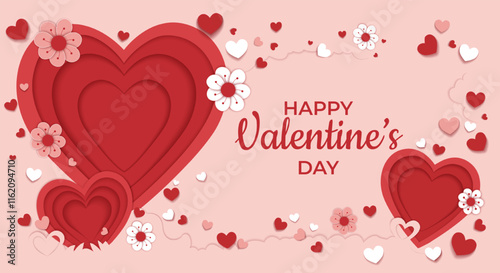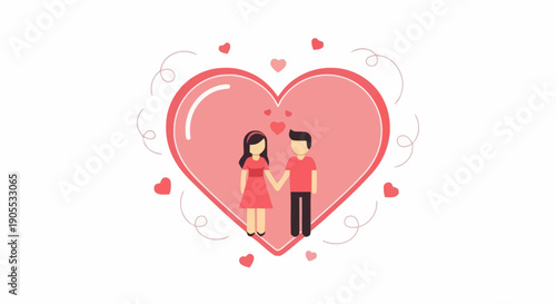 Вырезанное из слоистой бумаги сердечко со счастливой парой, держащейся за руки внутри, и красивыми цветами вокруг него. Векторная иллюстрация в стиле бумажного художественного ремесла. Шаблон поздравительной открытки на День Святого Валентина.