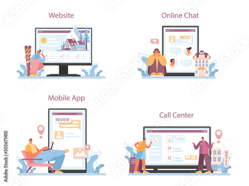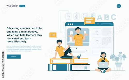 Разнообразные онлайн-сервисы для учебы, работы и отдыха. Векторный шаблон целевой страницы. Людям нравится находить информацию, работать, учиться и отдыхать в Интернете.