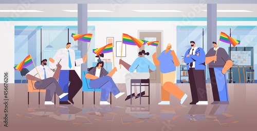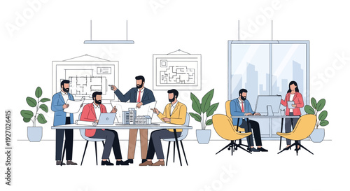 Концепция векторного баннера с бизнес-презентациями и встречами. Плоский дизайн деловых людей или офисных работников. Офисный интерьер.