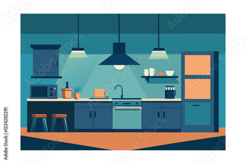 Векторный баннер с интерьерами ресторана. Повара готовят еду в кухонной комнате. Векторная иллюстрация в плоском дизайне.