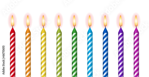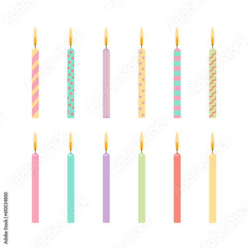 Векторный набор значков свечей для торта на день рождения. Реалистичная 3d-иллюстрация горящих свечей.