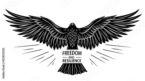Векторная татуировка птицы ворон или дизайн принта на футболке. Нарисуйте черного ворона с распростертыми крыльями в сочетании с природой, фазами луны и элементами бохо.