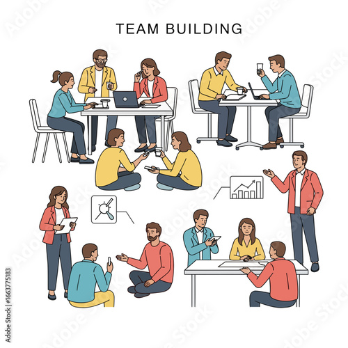 Векторный набор мультяшных персонажей посетителей кафе, изолированных на белом фоне. Люди, сидящие за столиками, разговаривающие друг с другом, читающие меню, пьющие чай или кофе, элементы дизайна в плоском стиле, иконки.