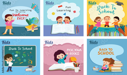 Набор векторных открыток с молодой женщиной, читающей книгу стоя, лежа дома и на улице, и вдохновляющими цитатами о чтении. Дизайн в плоском стиле