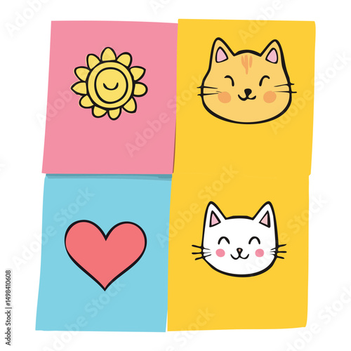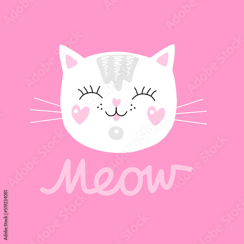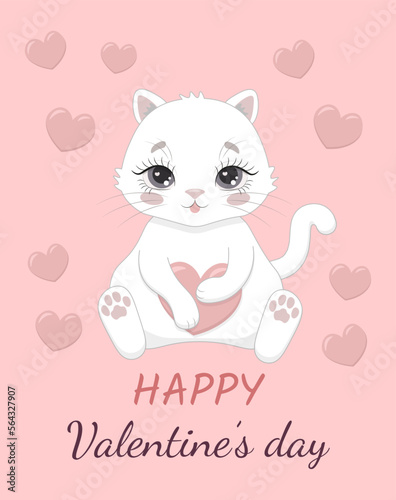 Векторное изображение животного с любовью. Милый кот выпрыгивает из подарочной коробки, иллюстрируя мультяшный значок. Милый счастливый персонаж для открытки на день святого Валентина, день рождения или свадьбу, романтический плакат с изолированным дизайном на белом фоне
