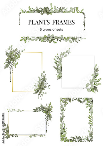 Рамка для векторных вьющихся растений и подставка для лиан. Декоративные элементы из зеленой лианы и плюща выделяются на белом фоне. Мультяшная иллюстрация дома и сада в джунглях
