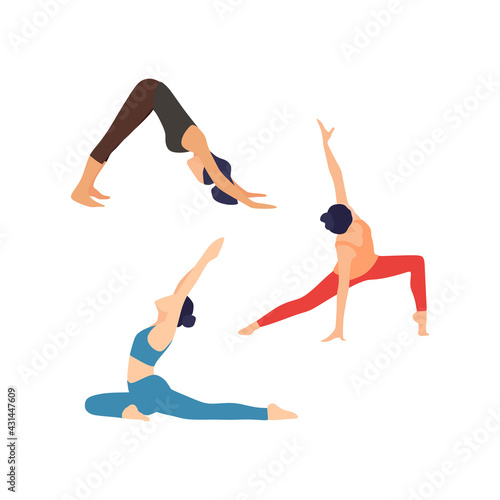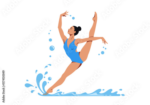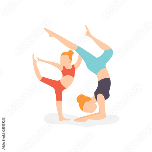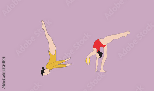 Векторная концептуальная иллюстрация художественной и художественной гимнастики. Элементы дизайна и иконки в плоском дизайне. Женская гимнастка