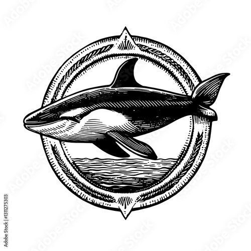 Художественный стиль татуировки дельфина. Векторный геометрический эскиз татуировки. Старинный нарисованный от руки красивый океанский дельфин, символ любви, дружелюбия, гармонии, игривости и радости.