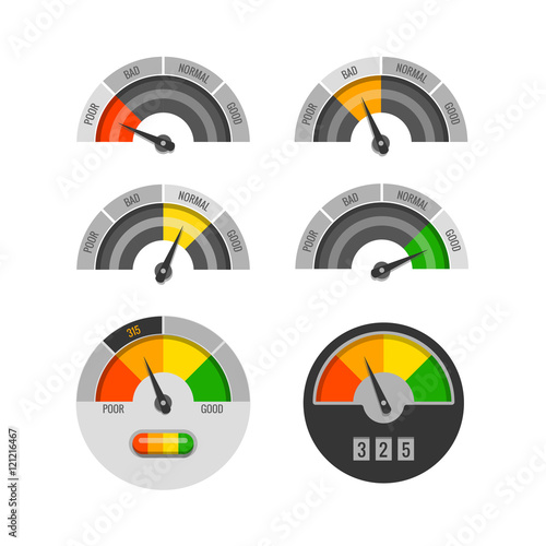 Набор векторных значков индикатора кредитного балла. Кредитный скоринг или расчет кредитоспособности элементов концептуального дизайна заемщиков.