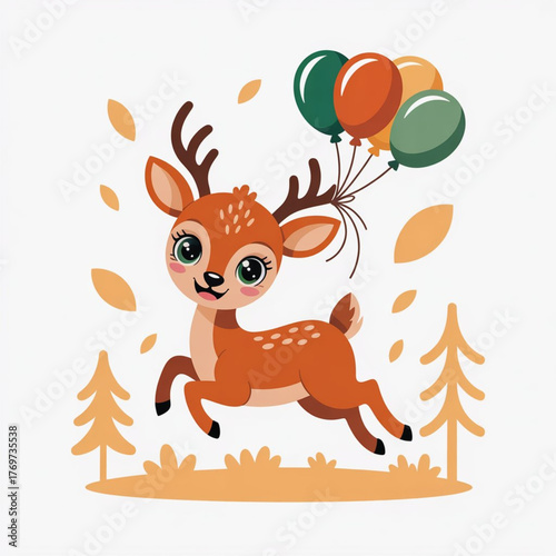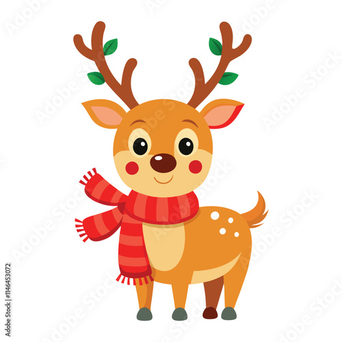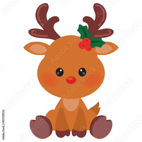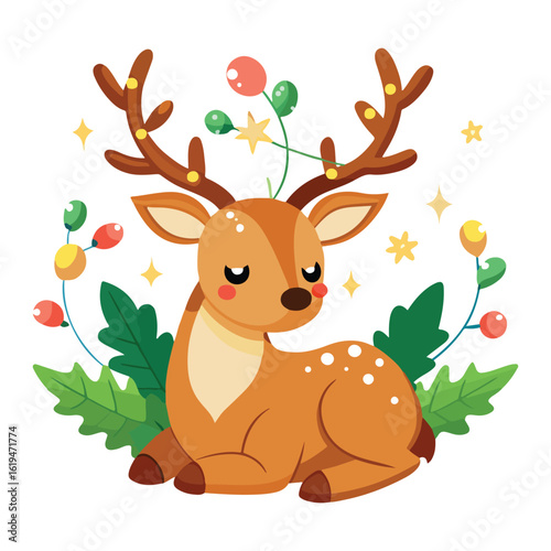 Векторная симпатичная рождественская белка. Мультяшный персонаж счастливого лесного животного в повязке на голову с оленем, держащий шарики-орнаменты для украшения елки. Поздравительная открытка к зимнему празднику