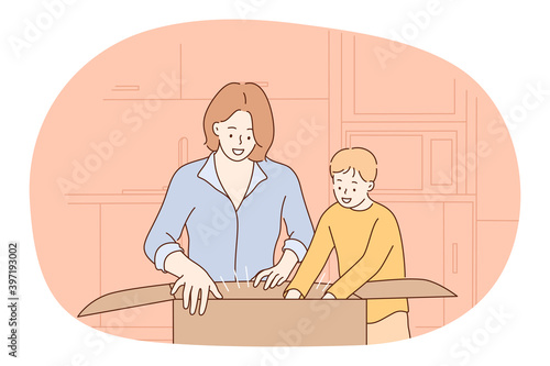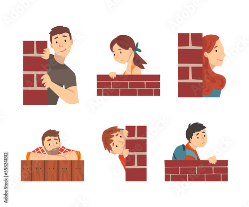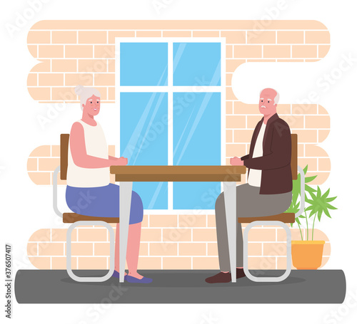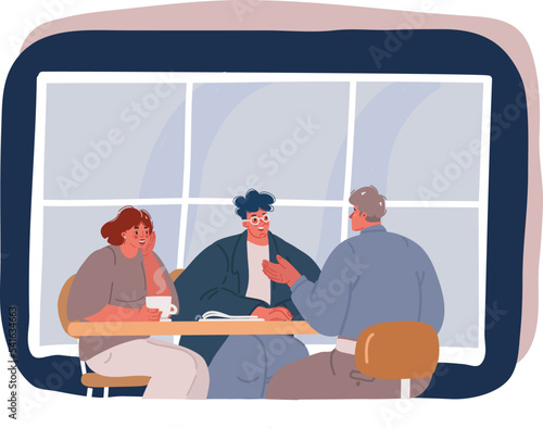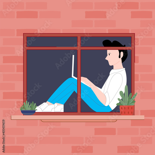 Векторная семейная пара, стоящая у окна и выглядывающая на улицу иллюстрация. Мужчина и женщина в домашнем мультфильме. Время самообороны или карантин достойная концепция