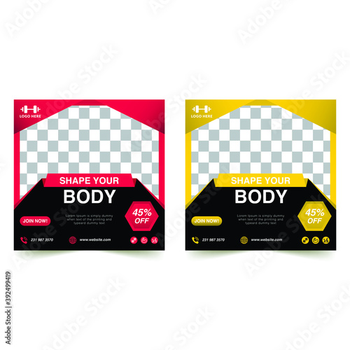 Набор векторных горизонтальных баннеров для фитнеса. Специальные предложения по членству в тренажерном зале, бесплатные абонементы и доступ к лучшему тренажерному оборудованию и занятиям.