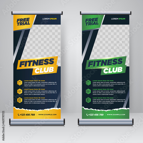 Набор векторных вертикальных баннеров для фитнеса. Специальные предложения по членству в тренажерном зале, бесплатные абонементы и доступ к лучшему тренажерному оборудованию и занятиям.