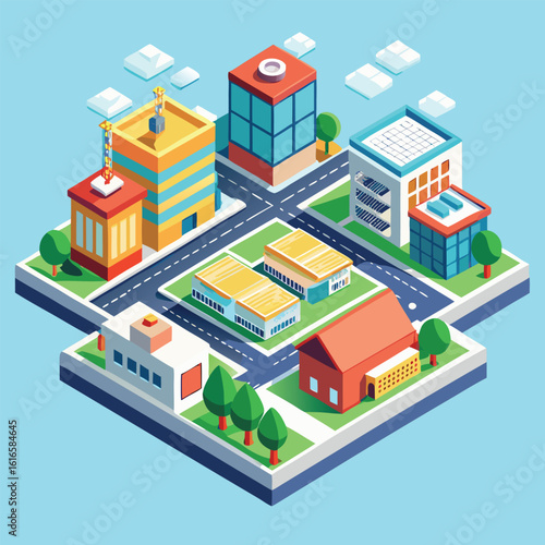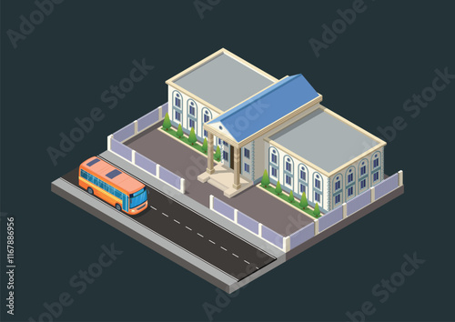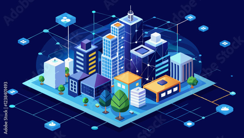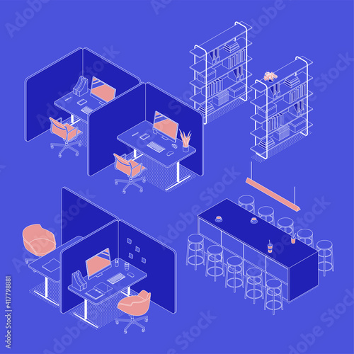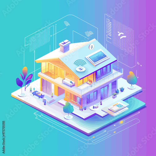 Векторный плоский 3d-изометрический дом с комнатами в разрезе. Детализированный современный интерьер дома с мебелью и бытовой техникой. Иллюстрация концепции умного дома.