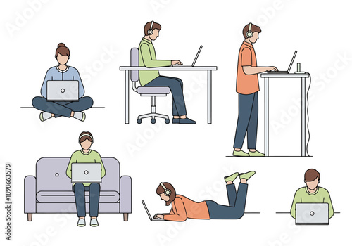 Набор векторных иконок с изображением гостиничного номера класса люкс, персонала отеля и гостей, мультяшных персонажей, изолированных на белом фоне. Элементы дизайна в плоском стиле.