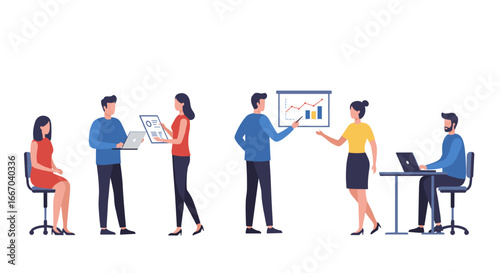 Векторная иллюстрация людей из ресторана. Менеджер, шеф-повар, повар, официант, кондитер и гости мужчина и женщина с бокалами в плоском стиле мультяшных персонажей, изолированных на белом фоне.