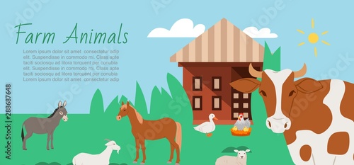 Векторная иллюстрация конюшни с коневодами мужского и женского пола, ухаживающими за животными, круглыми тюками сена. Элемент дизайна в плоском стиле коневодческой фермы.