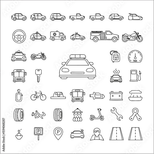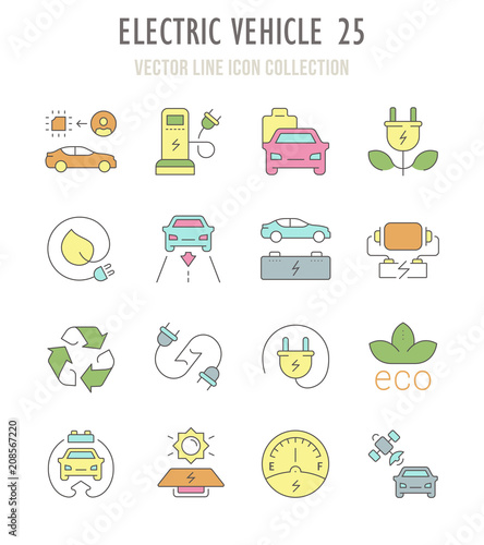 Векторный бесшовный узор с декоративными символами, значками для зарядки автомобиля от солнечной энергии и заправки бензином. Заправочный фон, текстура оберточной бумаги, тонкая линия, дизайн в плоском стиле.