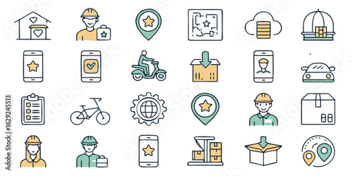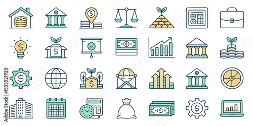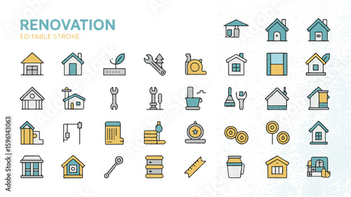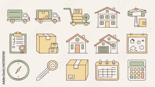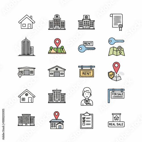 Векторный бесшовный узор с декоративными символами собственности дома, значками. Фон недвижимости и недвижимости, текстура оберточной бумаги, тонкая линия, дизайн в плоском стиле.