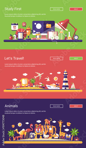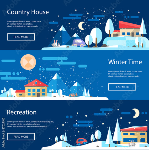 Векторный набор горизонтальных баннеров с горами, зимними развлечениями, зимними каникулами, элементами дизайна в плоском стиле, веб-шаблонами.