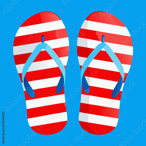 Векторный пляж с флип-флопом. Значок тапочка. Иллюстрация изолированных летних сандалий. Мультяшная обувь с флип-флопом на морском пляже. Пара дизайнерских резиновых сандалий на белом фоне