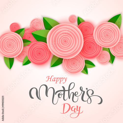 Поздравительная открытка с Днем женщин. Векторный элемент цветочного дизайна с вырезанными из бумаги розовыми розами на белом фоне. поздравительная открытка с 8 марта, днем матери.