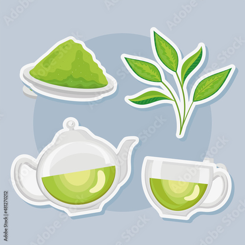Векторный набор свежих листьев мяты. Завиток из трав мяты, листья мяты перечной и кубики льда.