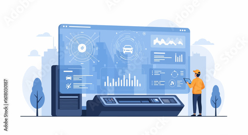 Векторная иллюстрация приборной панели IP-технологий будущего. Футуристический сенсорный пользовательский интерфейс синий экран hud дисплей приборной панели. Сенсорная панель управления "умным домом".