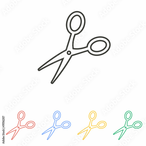 Векторная иллюстрация символа-значка ножниц для стрижки волос. Парикмахер, парикмахерша или грумер с острыми ножницами, выделенными на белом фоне