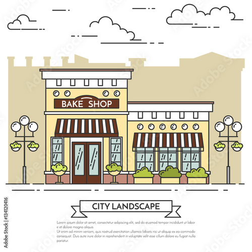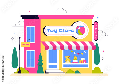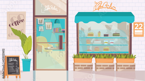 Векторная плоская иллюстрация местного уличного рынка с хот-догами. Магазин быстрого питания навынос, изолированный на белом фоне. Концепция малого бизнеса