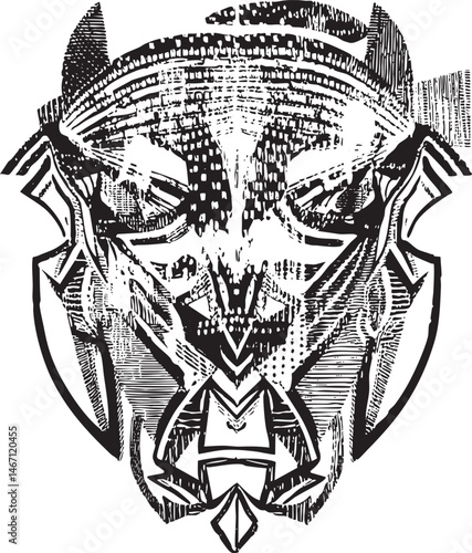 Векторная татуировка животного или дизайн принта на футболке. Воющий волк в сочетании с природой, розой компаса и геометрическими формами.