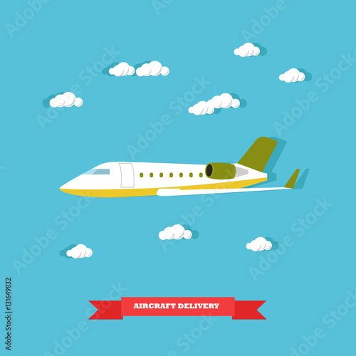 Векторная иллюстрация концепции доставки самолетов в плоском стиле. Доставка самолетом. Логистические перевозки.