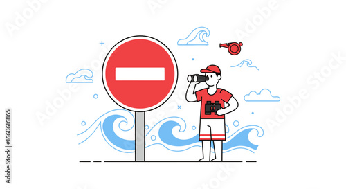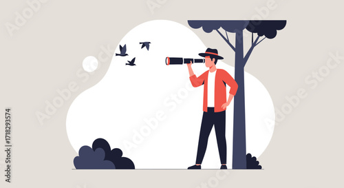 Векторная иллюстрация астронавта, стоящего на поверхности новой планеты с флагом. Космический пионер, элемент дизайна космического исследователя в плоском стиле.
