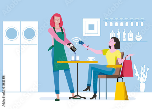 Векторная иллюстрация людей, ожидающих в очереди за наличными деньгами. Очередь, банкомат, банкомат. Элемент дизайна концепции банковского дела и технологий в плоском стиле