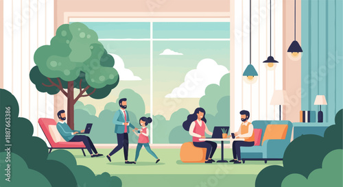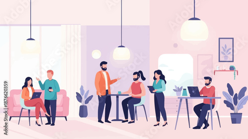 Векторная иллюстрация банковского офиса с менеджером, финансовым консультантом и клиентами. Люди стоят в очереди за наличными деньгами. Элемент дизайна банковской концепции в плоском стиле
