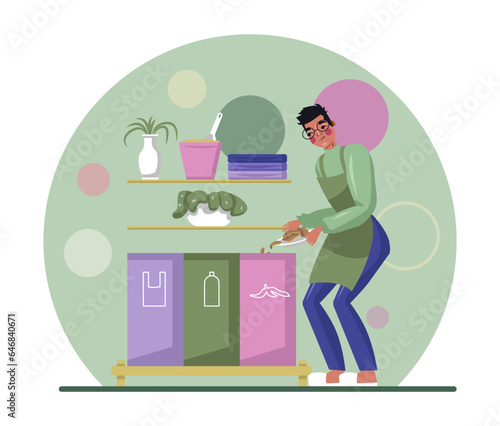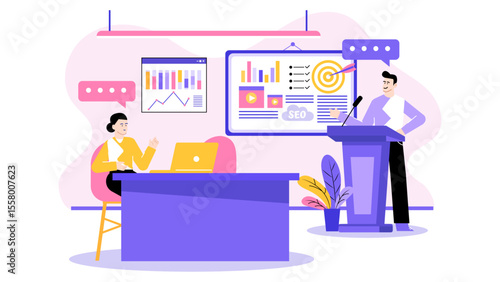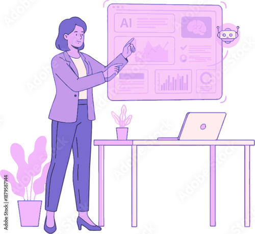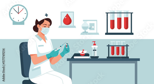 Векторная иллюстрация концепции биологического исследования в плоском стиле. Интерьер биологической лаборатории. Женщина-биолог работает с лабораторной посудой и оборудованием.