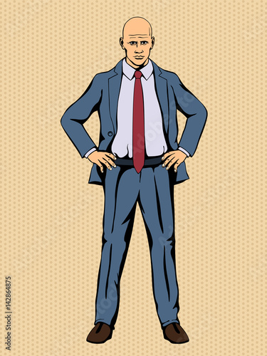 Векторная иллюстрация бизнесмена, демонстрирующего пустые карманы в стиле комиксов ретро-поп-арта. Концепция банкротства.