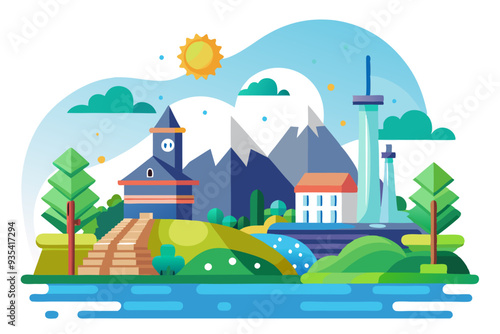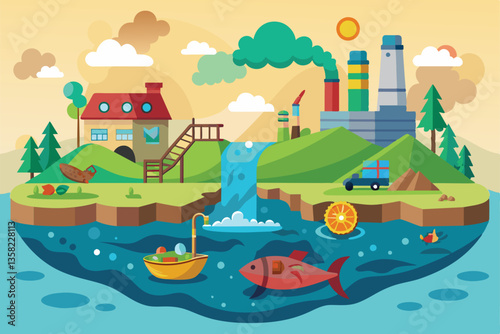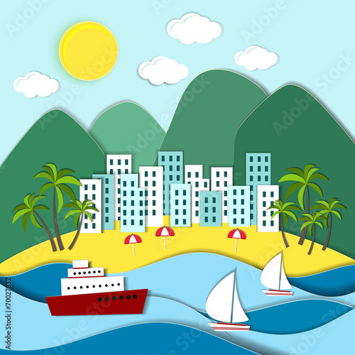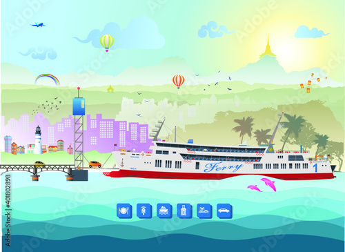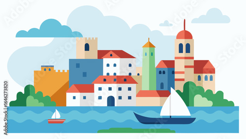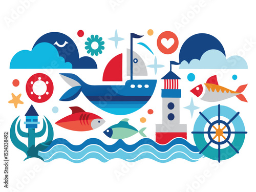 Векторная иллюстрация корабля и лодки, плавающих по морю. Элемент дизайна концепции бизнеса и лидерства в плоском стиле.