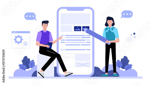 Векторная иллюстрация силуэтов бизнесменов в различных ситуациях. Презентация, разговор по мобильному телефону, работа на ноутбуке. Деловые люди, элемент дизайна концепции офисной жизни в плоском стиле
