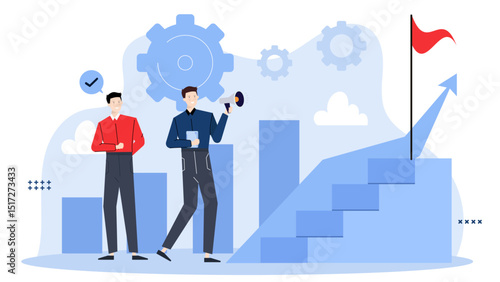 Векторная иллюстрация двух бизнесменов, держащихся за электрическую лампочку внутри человеческой головы. Элемент дизайна концепции новых творческих идей.