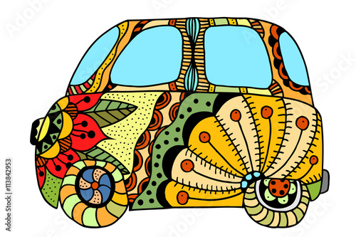 Векторная иллюстрация открытого багажника автомобиля, полного подарков в стиле комиксов ретро-поп-арта. Праздничный шопинг. Счастливых рождественских подарков.