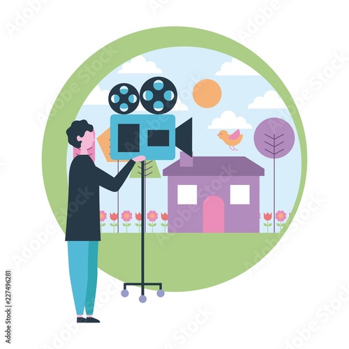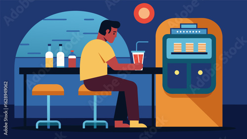 Векторная иллюстрация шаблона дизайна кофейни с бариста и посетителем. Клиент, стоящий у барной стойки. Интерьер кофейни в плоском стиле.