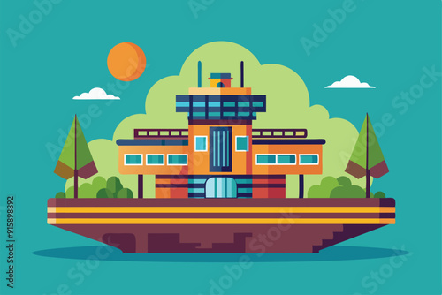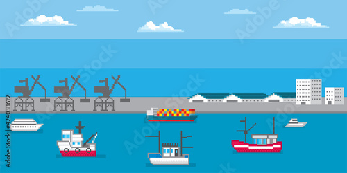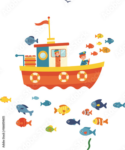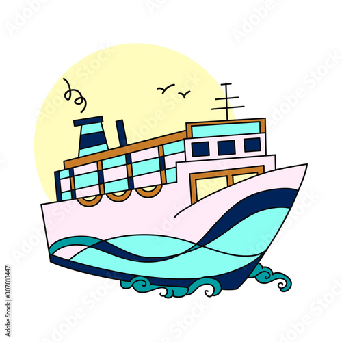 Векторная иллюстрация концепции транспортного средства доставки в плоском стиле. Доставка морским путем. Логистические перевозки.