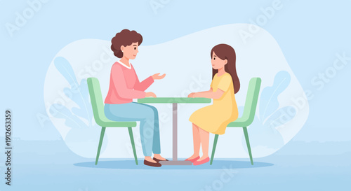 Векторная иллюстрация женщины-инвалида в инвалидном кресле, наслаждающейся встречей со своей подругой молодой женщиной. Дизайн в плоском стиле.