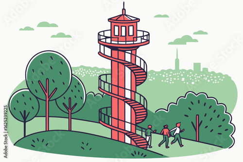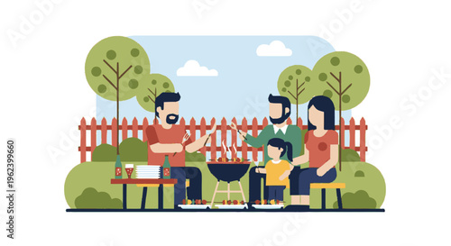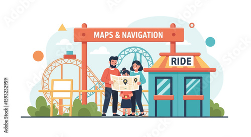 Векторная иллюстрация отца, матери с дочерью, гуляющих в парке. Элемент дизайна семейной концепции в плоском стиле.