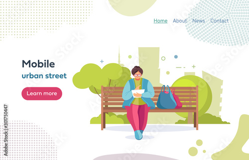 Векторная иллюстрация бабушки, стоящей рядом со скамейкой в парке. Элемент дизайна в бабушкином плоском стиле.