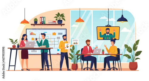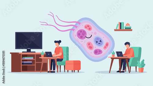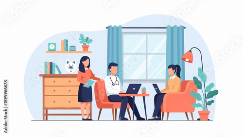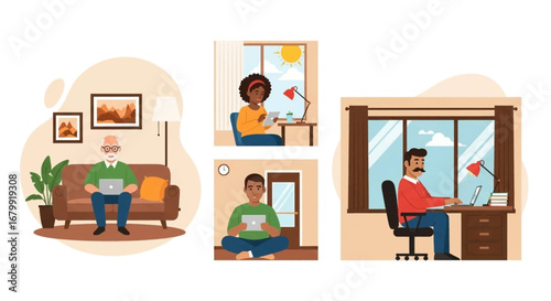 Векторная иллюстрация бабушки, сидящей в кресле и смотрящей телевизор. Кошка, лежащая позади нее. Персонажи мультфильмов и интерьер гостиной в плоском дизайне.