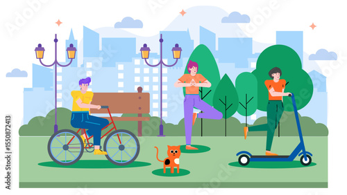 Векторная иллюстрация счастливых матерей со своими детьми, гуляющих в парке. Элемент дизайна семейной концепции в плоском стиле.