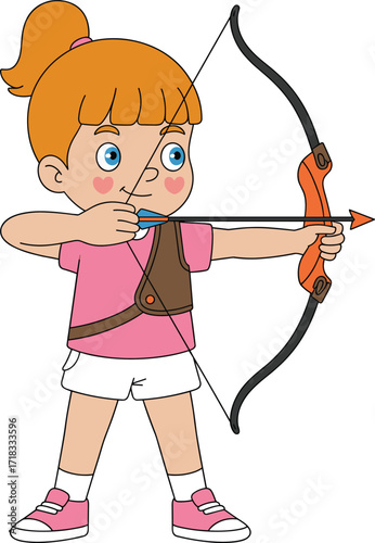 Векторная иллюстрация леди арчер, натягивающей лук в стиле комиксов ретро-поп-арта. Концепция стрельбы из лука.