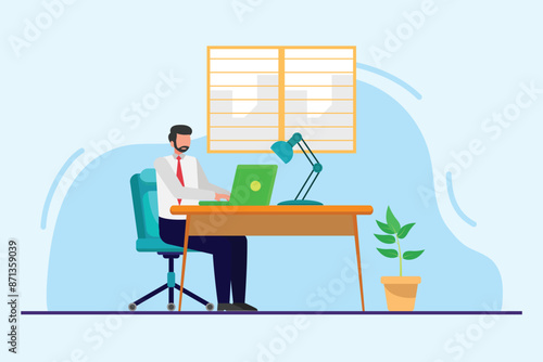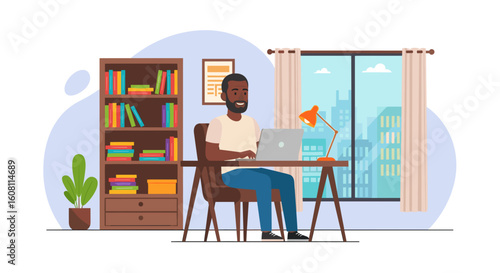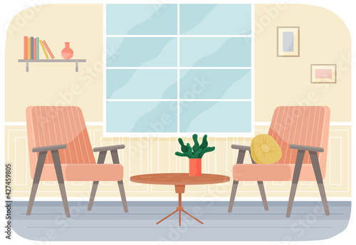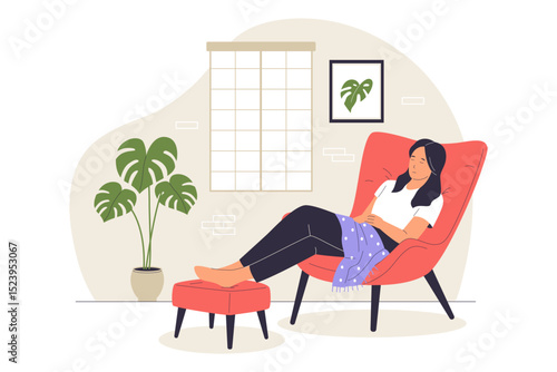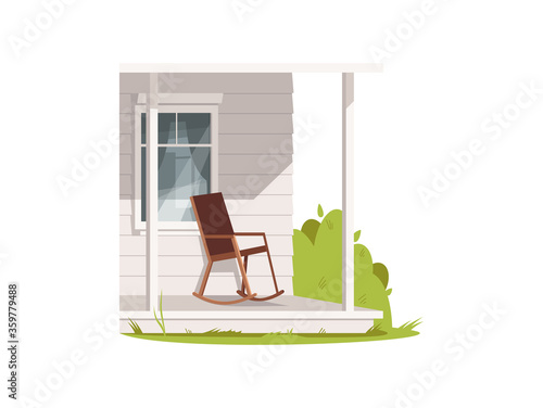 Векторная иллюстрация человека, сидящего в кресле возле дома со стаканом лимонада, готовящего барбекю и отдыхающего. Персонаж мультфильма. Плоский дизайн.